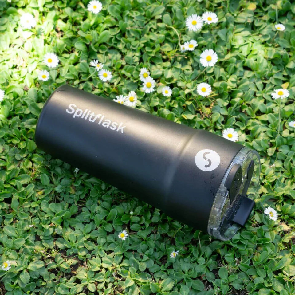 Splitflask reduces the reliance on single use cops and bottles by twice as much as other products, offering an additional compartment for beverage needs.